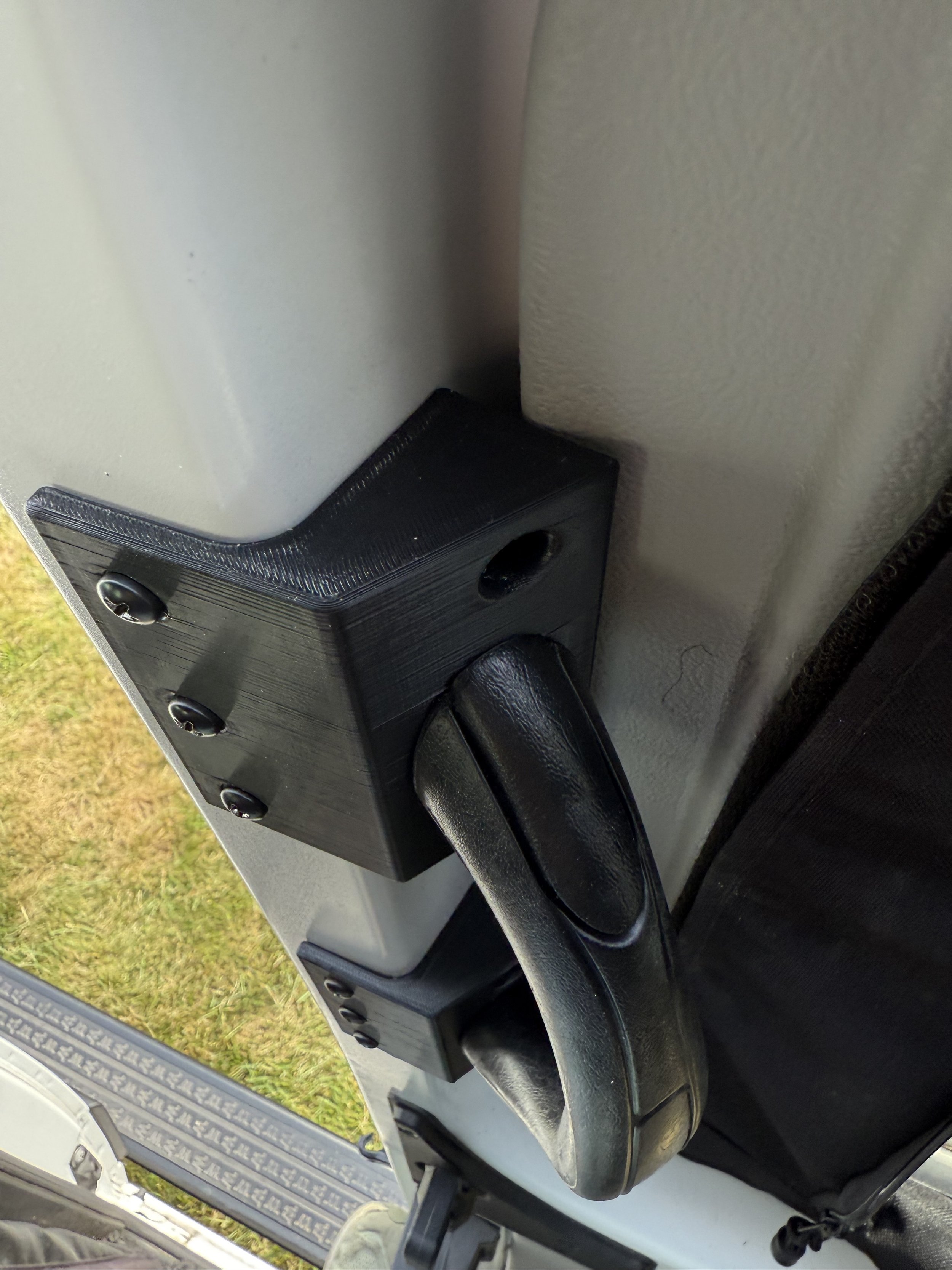 3D printed blocks were designed to install and orient an automative style grab handle so that it can be easily gripped